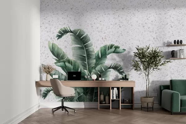 Fototapeedid Troopilised lehed ja terrazzo taust Nr w02376