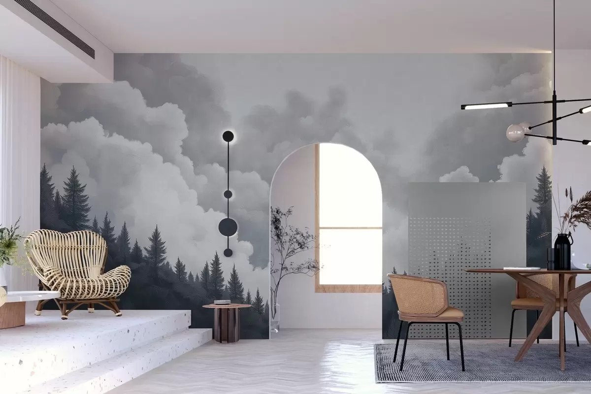 Fototapeedid Maalitud paksud pilved üle metsa õlistiilis Nr w02411