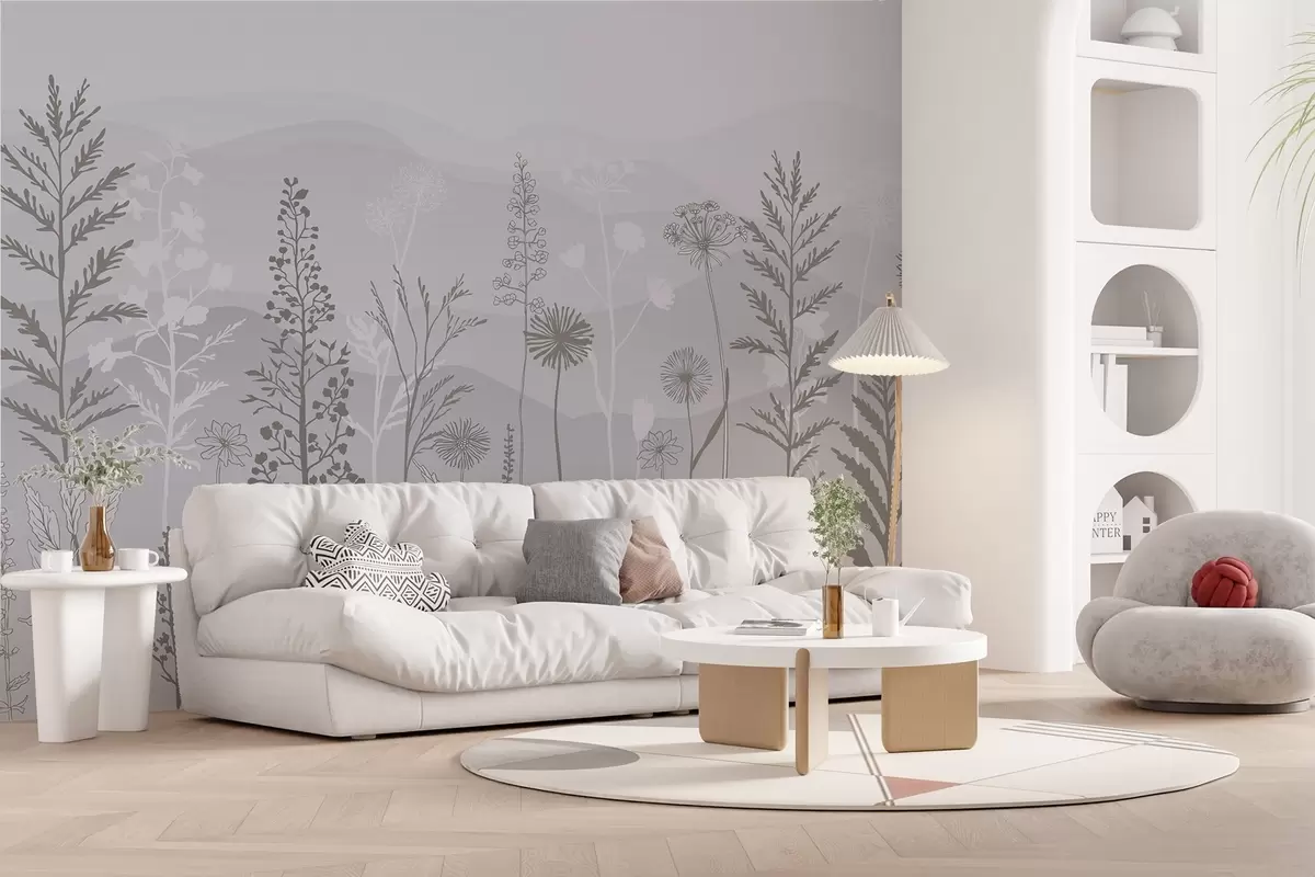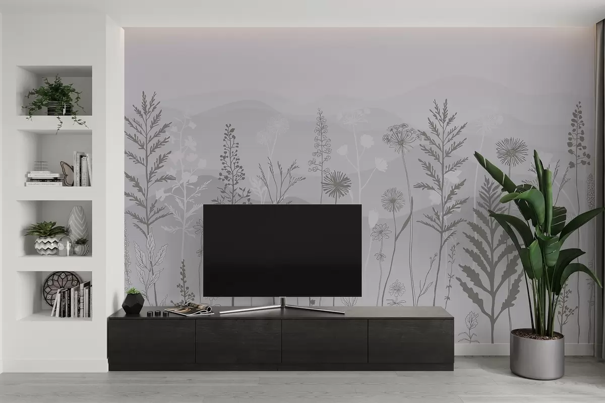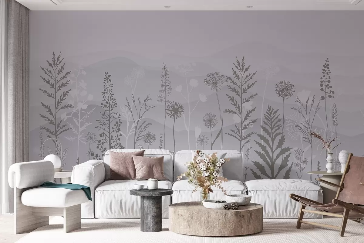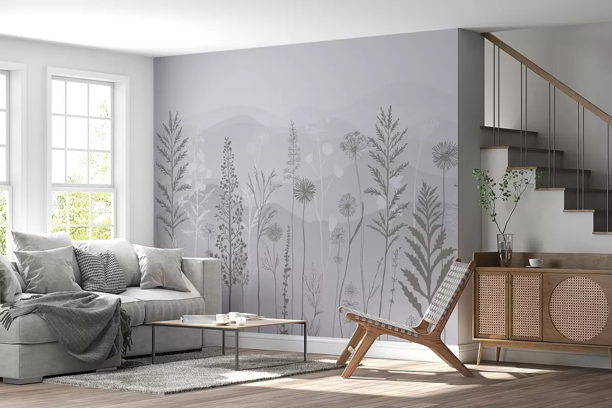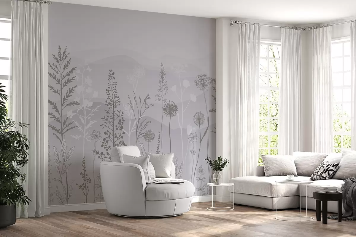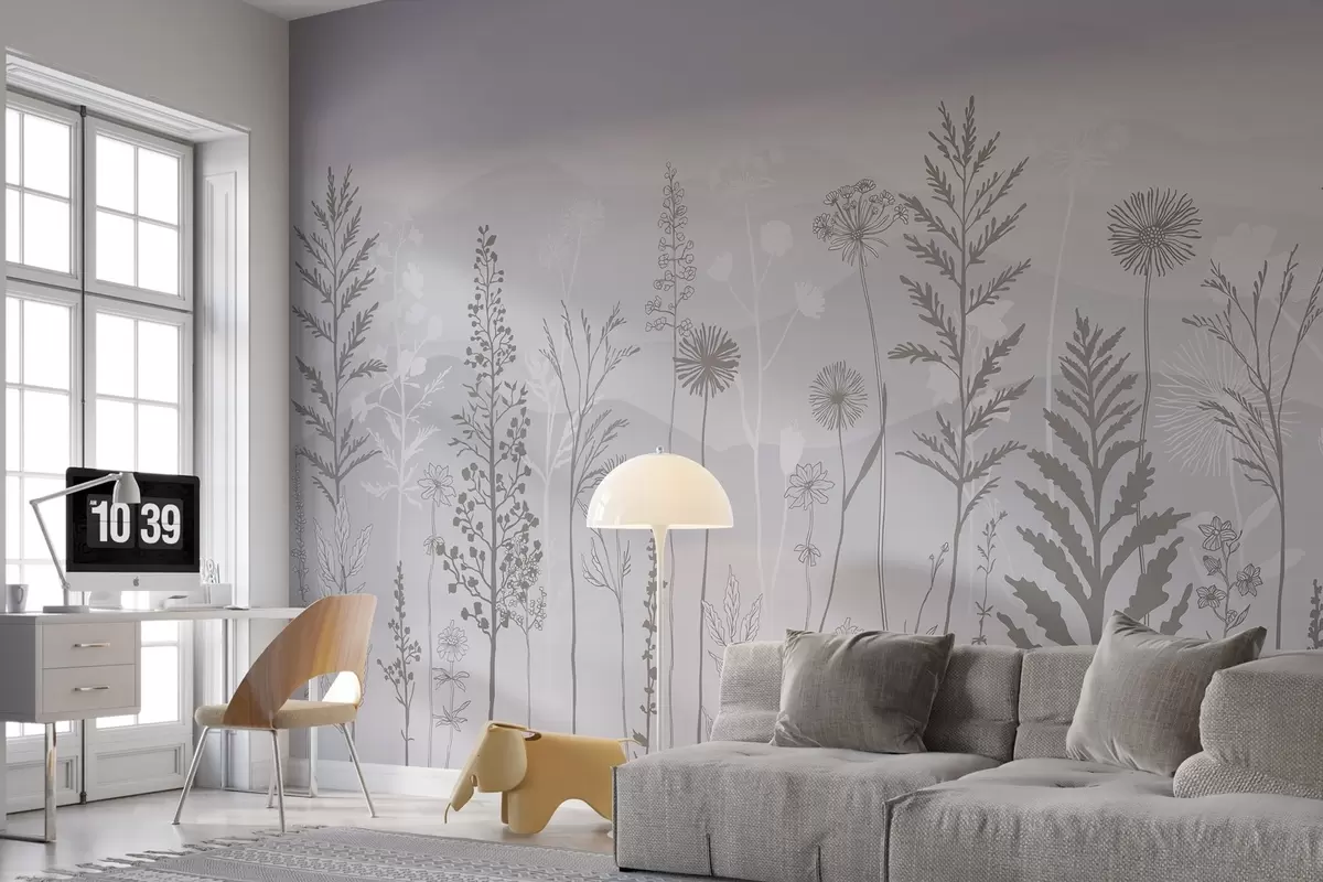 Fototapeedid ökostiilis tapeet, metslilled hallides toonides w02443