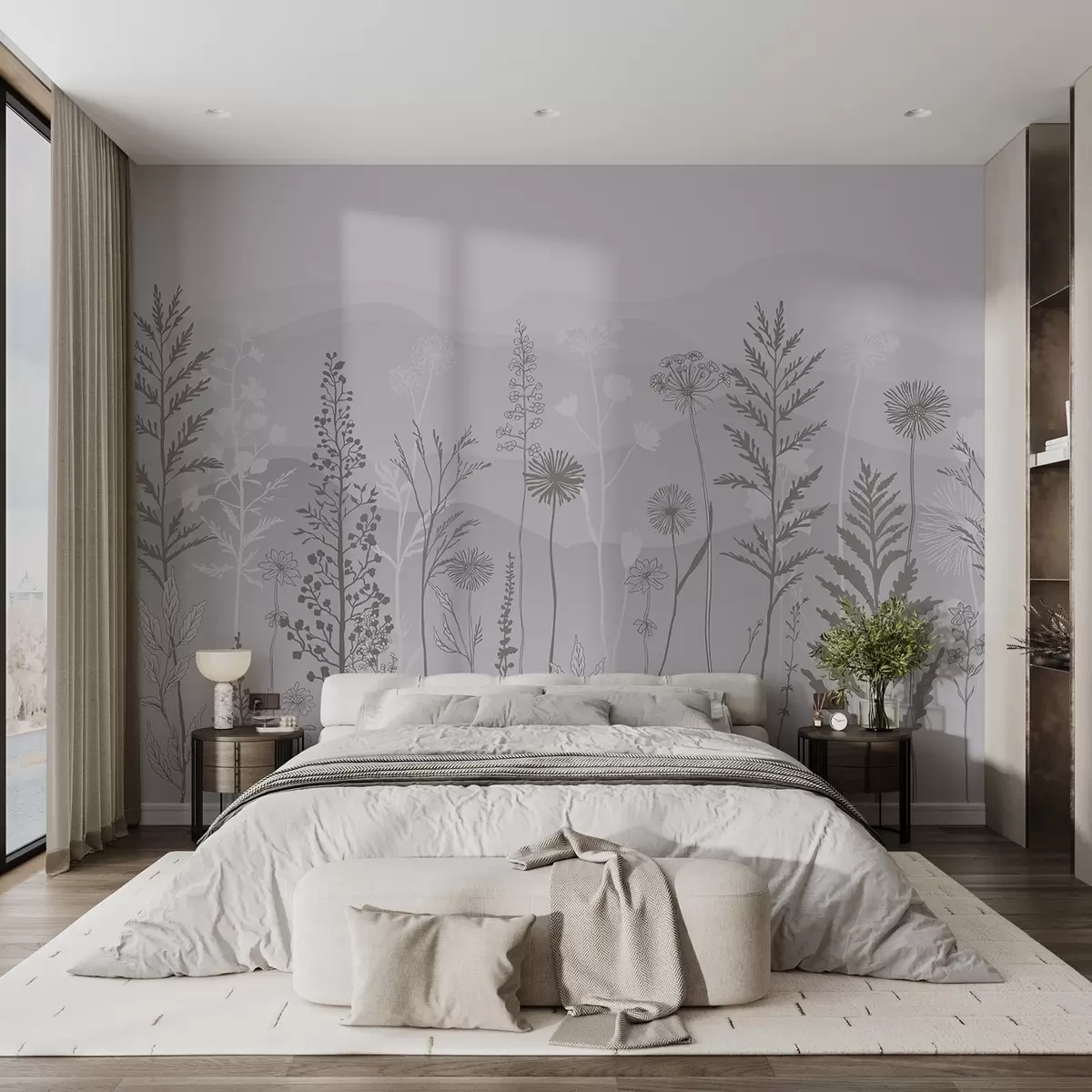 Fototapeedid ökostiilis tapeet, metslilled hallides toonides Nr w02443