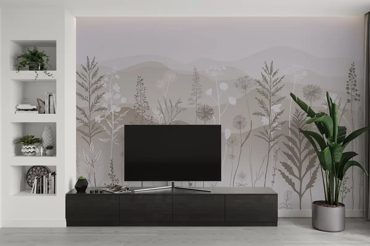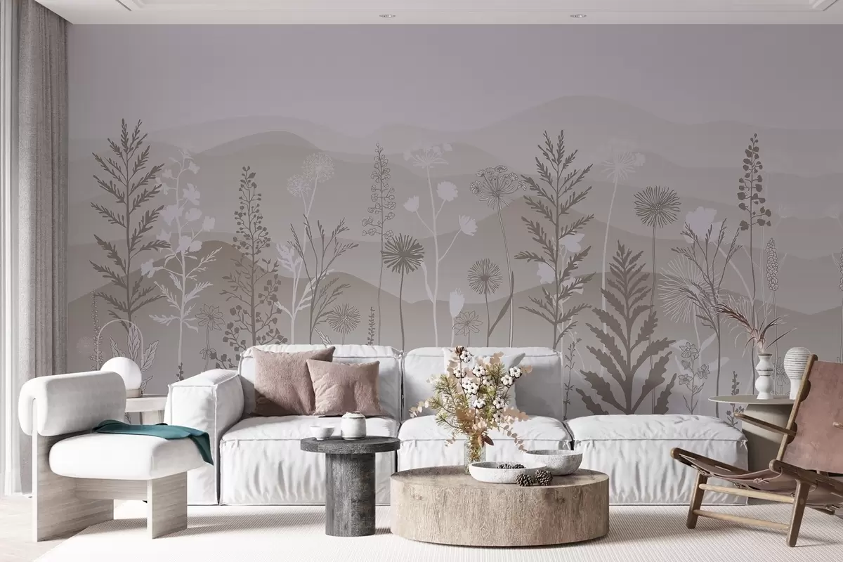 Fototapeedid ökostiilis tapeet, metslilled helepruunides toonides Nr w02443v1