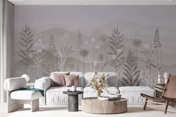 Fototapeedid ökostiilis tapeet, metslilled helepruunides toonides Nr w02443v1