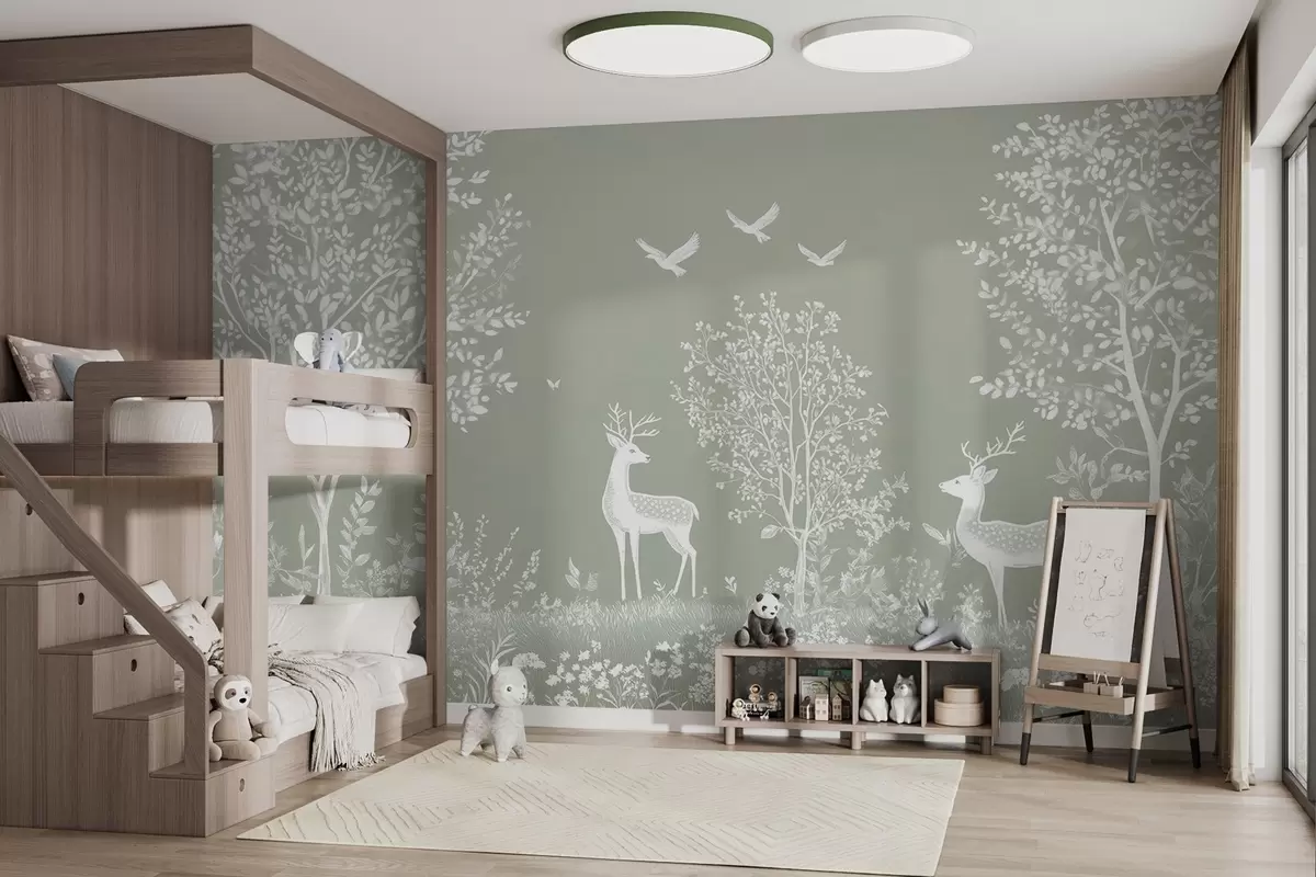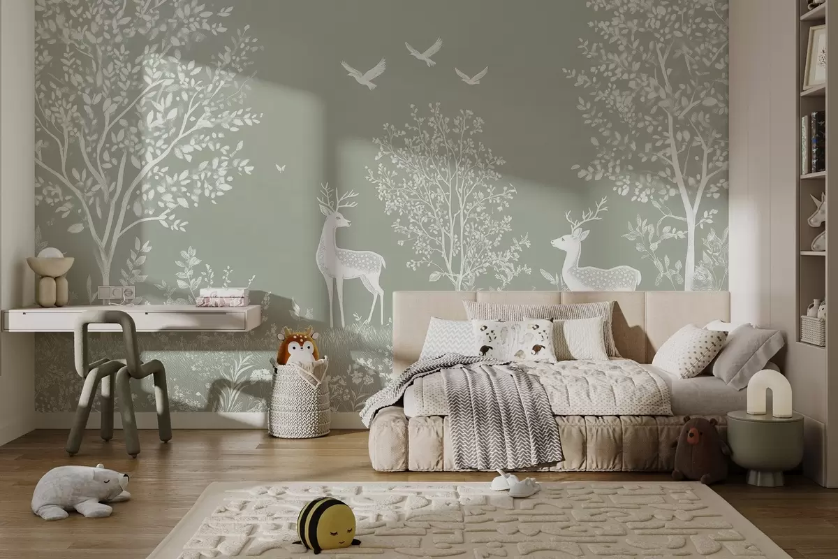 Fototapeedid mets koos hirvedega stiilis kriidijoonistus oliivipärja taustal Nr w02444v1