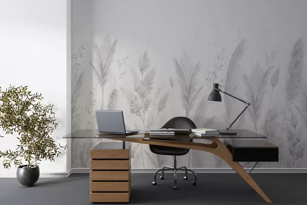 Fototapeedid Õrnad metsalilled ja õrnad õisikud pastelsetes hallides toonides Nr w02446v1