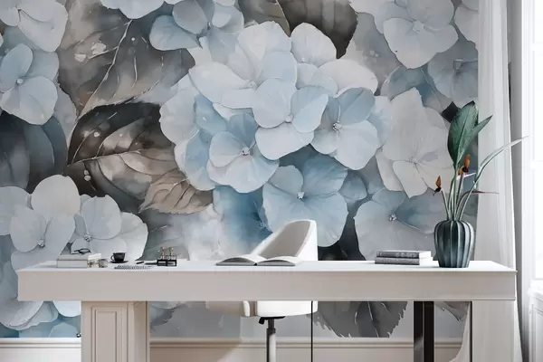 Fototapeedid Hortensialilled, akvarellstiilis joonistus, sinised värvid, lilleline Nr w02488v1