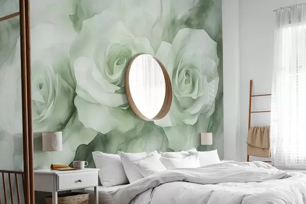 Fototapeedid Ilusad roosid, akvarellstiil, rohelised värvid, boheemlaslik stiil Nr w02492v2