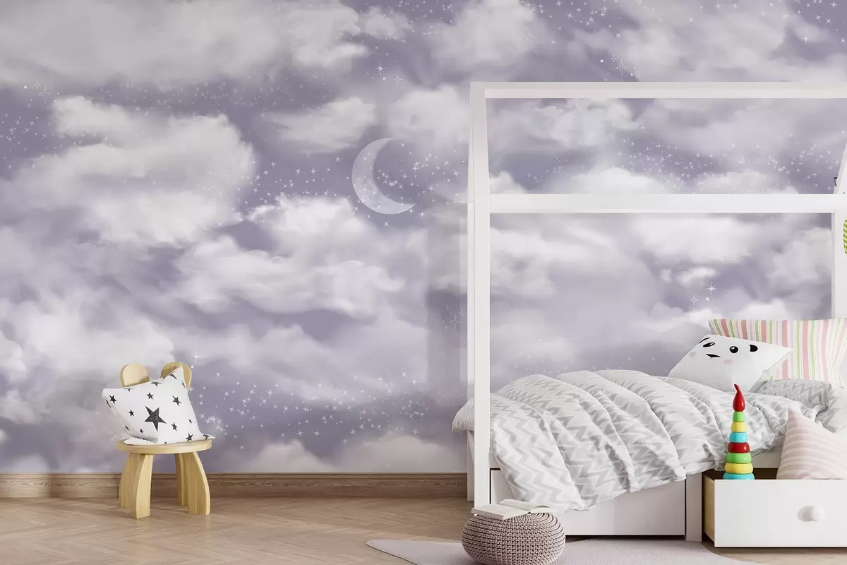 Fototapeedid Tähtede taevas koos kuu ja pilvedega, unenäoline, eeterlik, pehmed lillad värvid Nr w02515v4