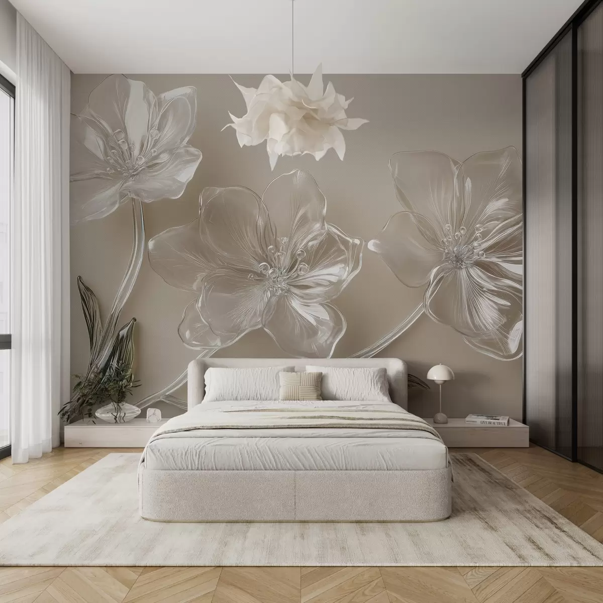 Fototapeedid suured lilled imitatsiooniklaasist beežil taustal Nr w02518