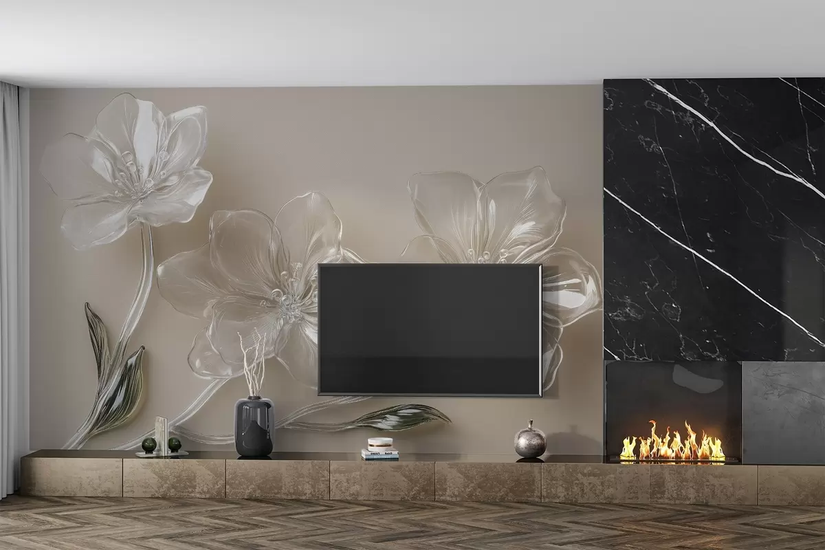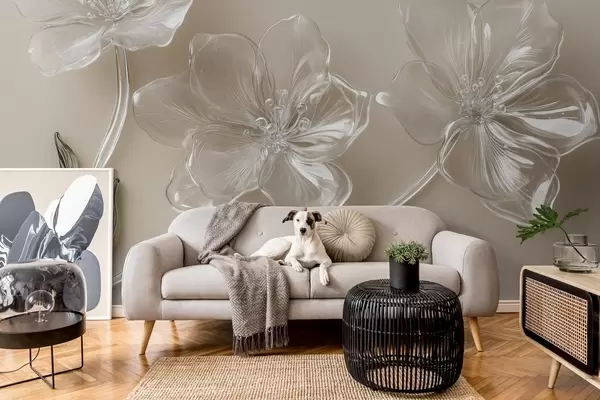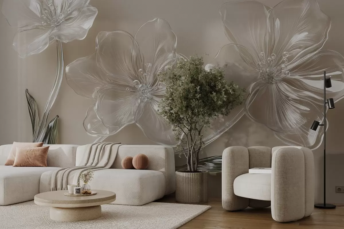 Fototapeedid suured lilled imitatsiooniklaasist beežil taustal Nr w02518