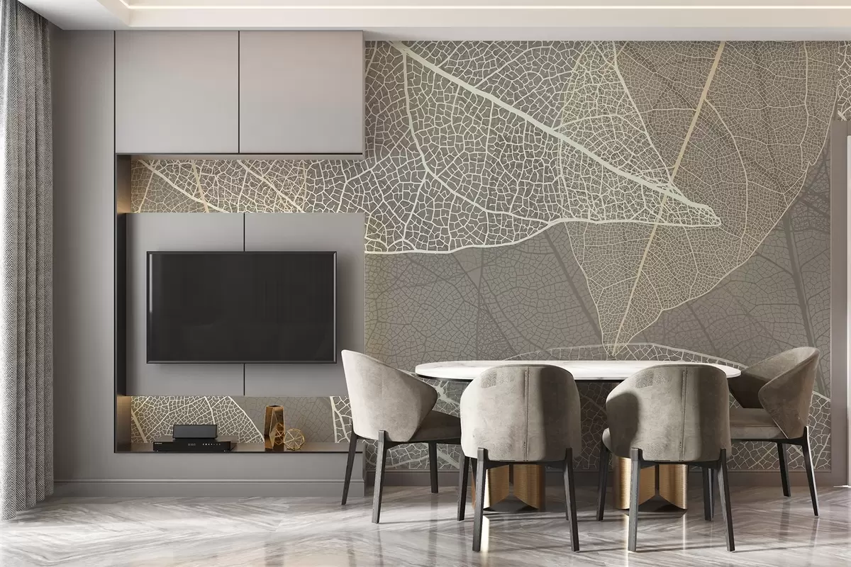 Fototapeedid lähivaade sooja halli tooniga veenidega lehtedest Nr w02520v2