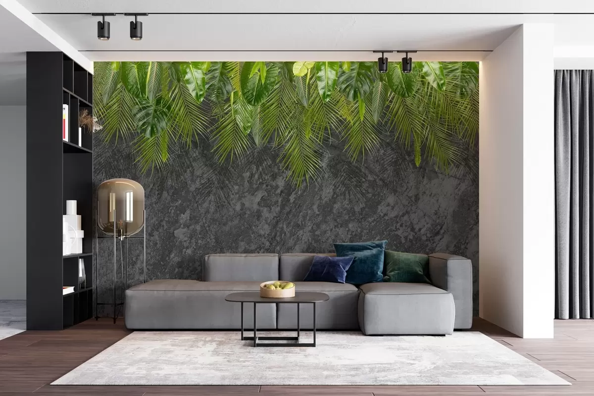 Fototapeedid troopilised lehed kiviimitatsiooni taustal Nr w02547