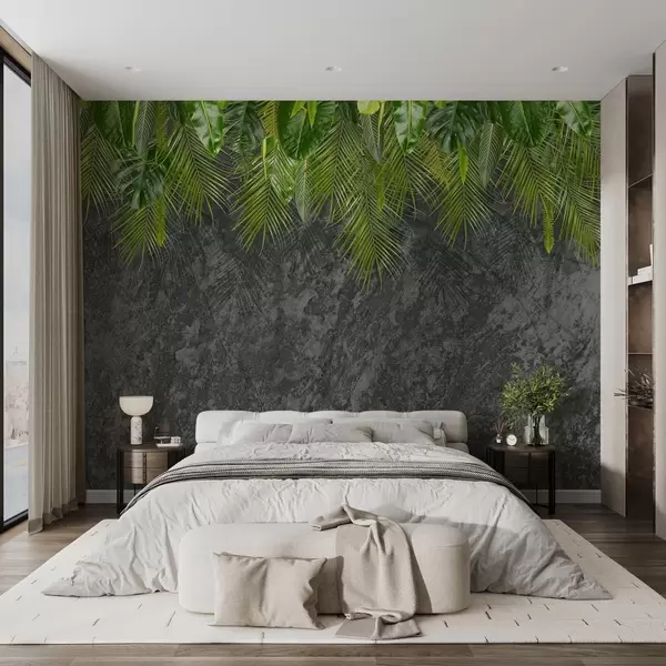 Fototapeedid troopilised lehed kiviimitatsiooni taustal Nr w02547