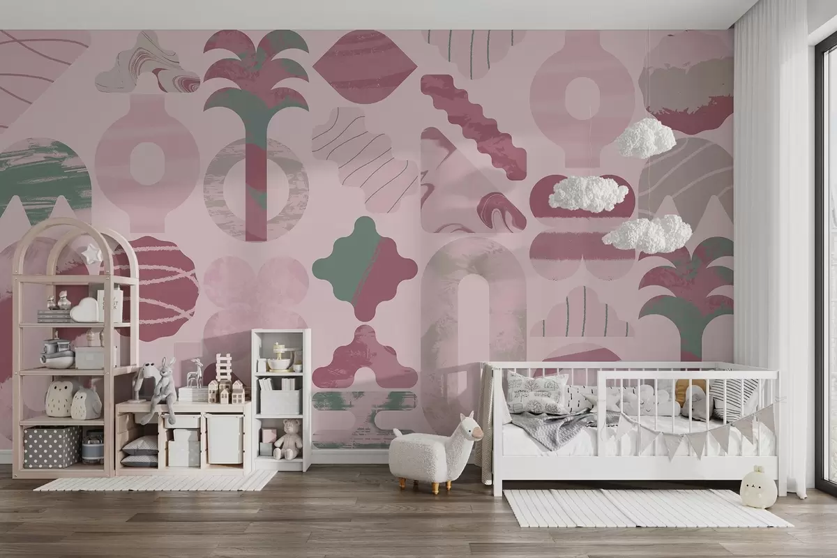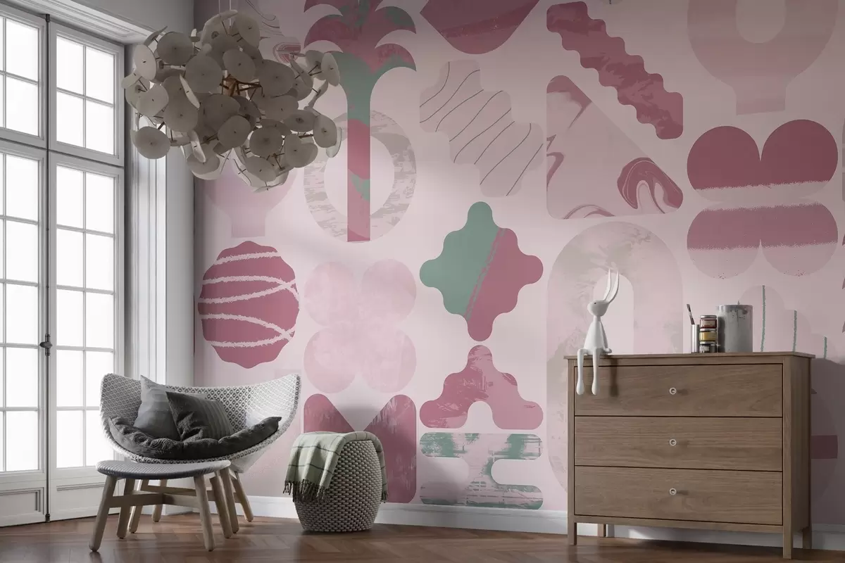 Fototapeedid erinevaid huvitavaid kujundeid, kaasaegset geomeetriat roosades värvides Nr w02550