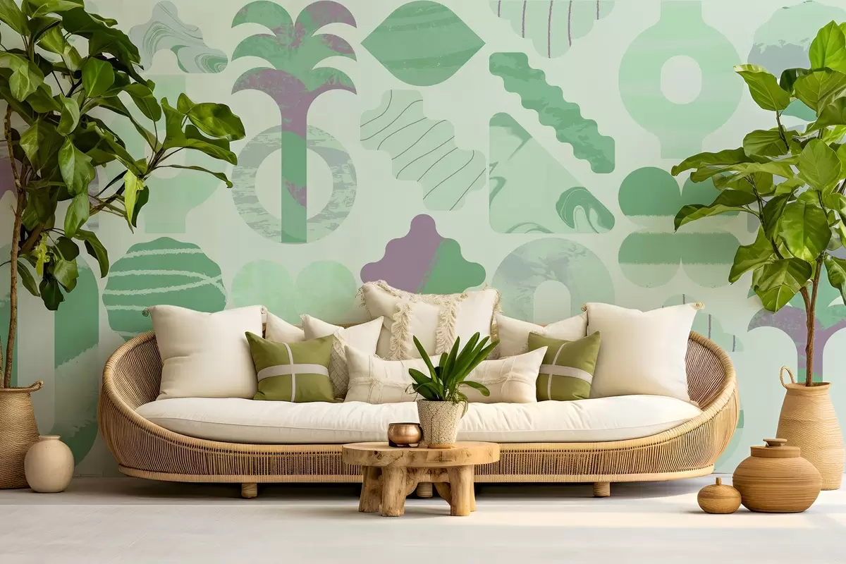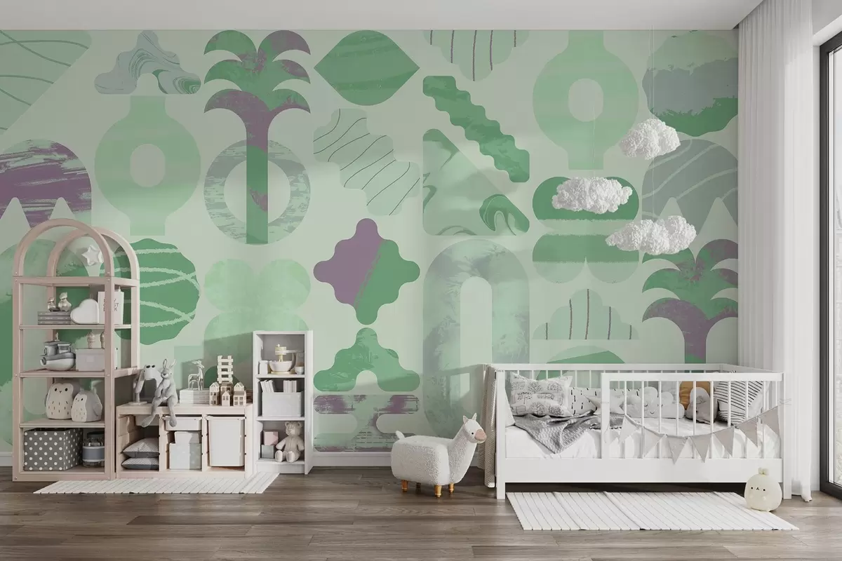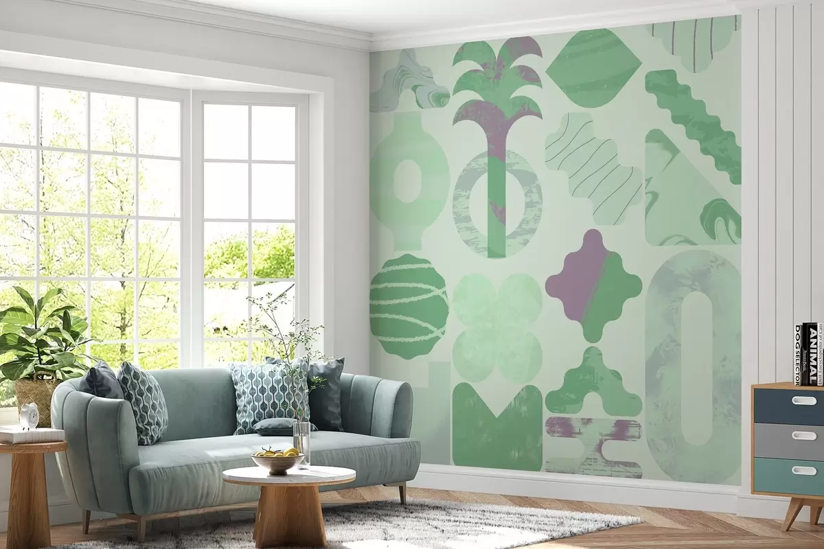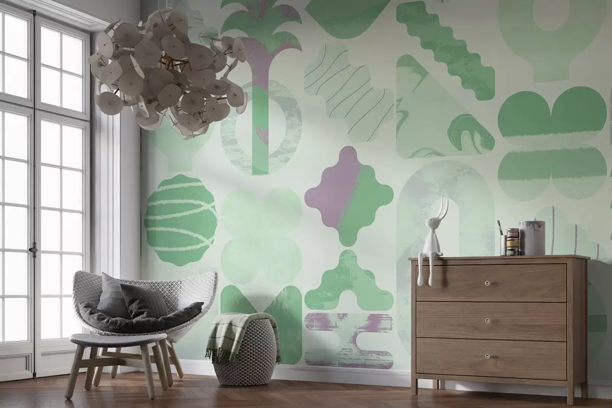 Fototapeedid erinevad huvitavad kujud, kaasaegne geomeetria rohelistes värvides w02550v2