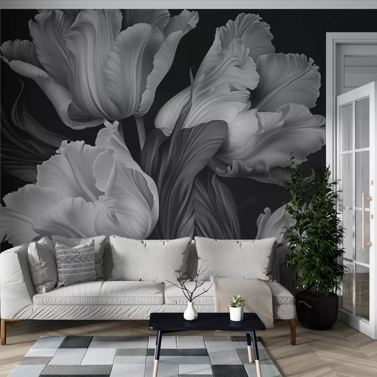 Fototapeedid Must-valged tulbid fotorealistlikus stiilis Nr w02557