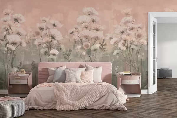Fototapeedid Õrnad metsalilled pintslitõmmetega roosa efektiga Nr w02629