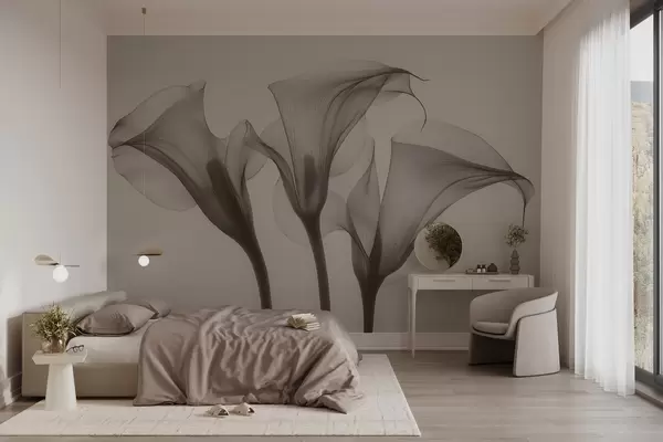 Fototapeedid õhuline läbipaistev Zantedeschia lilled beeži toonides Nr w02632