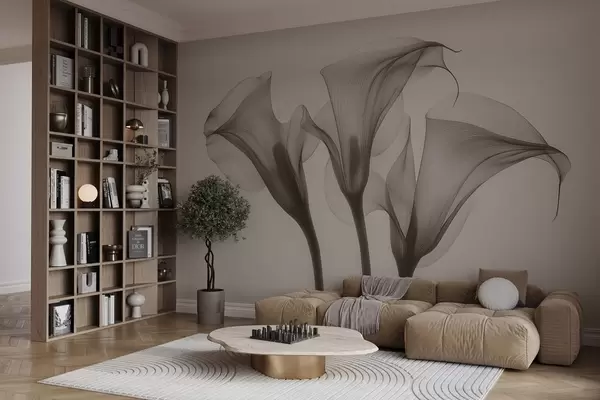 Fototapeedid õhuline läbipaistev Zantedeschia lilled beeži toonides Nr w02632