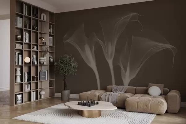 Fototapeedid õhuline läbipaistev Zantedeschia lilled tumedal taustal Nr w02632v1