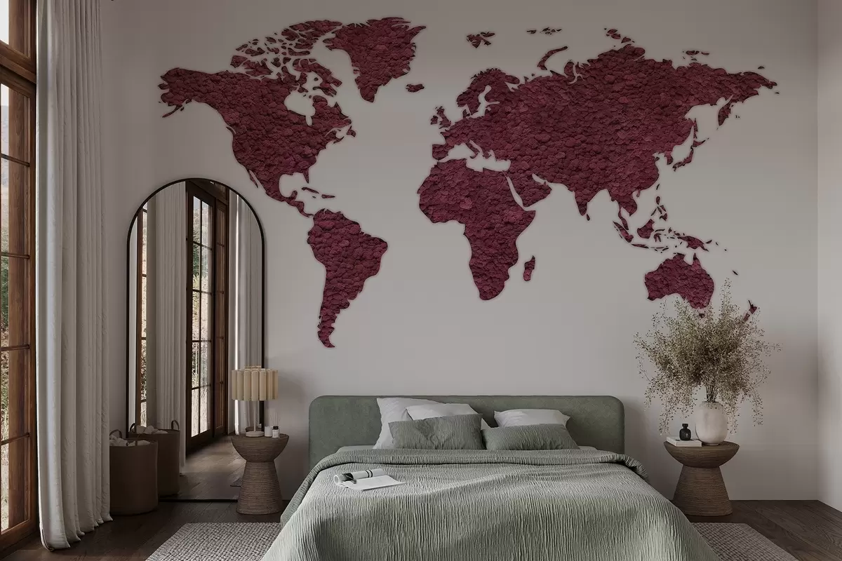 Fototapeedid Maailmakaart koos sambla, looduse, burgundia värvipaletiga Nr w02657v5