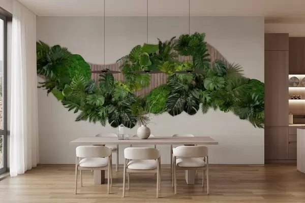 Fototapeedid Palmilehtede, sambla ja puidust taustaga lillepaneel Nr w02717