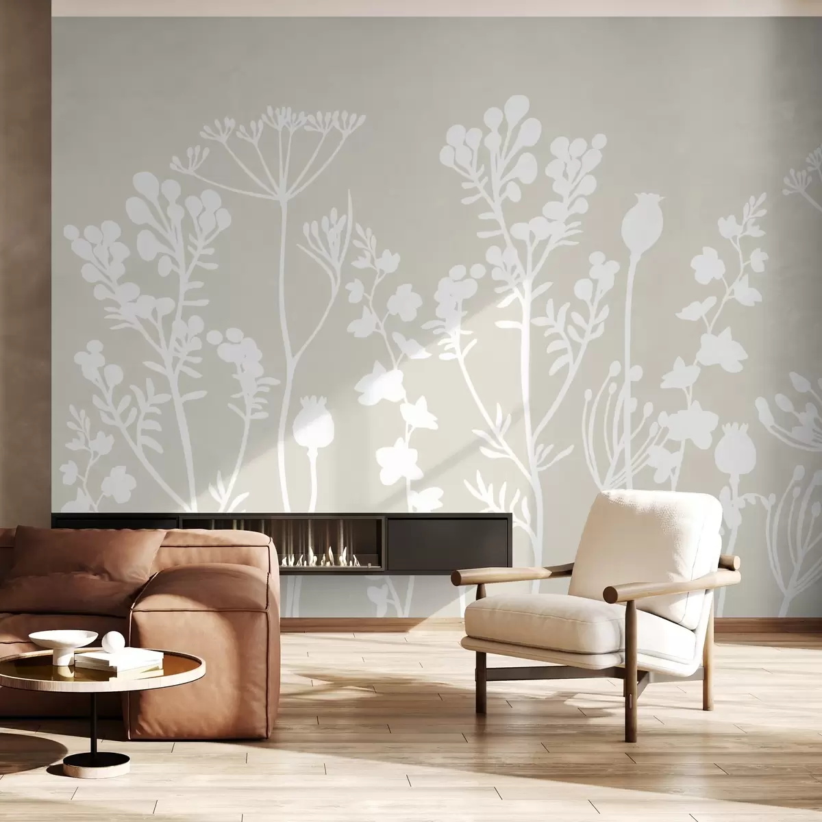 Fototapeedid valged lillede siluetid beežil taustal Nr w02809v2