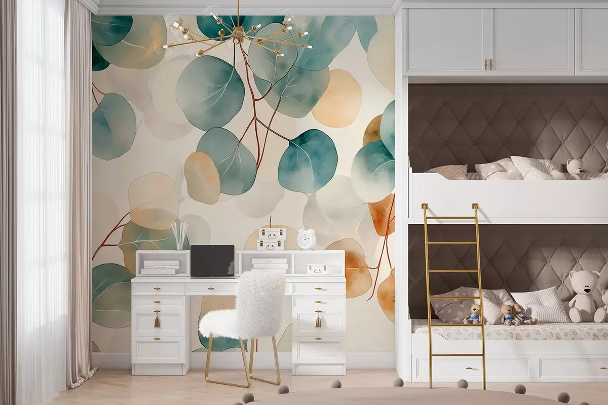 Fototapeedid Akvarellstiilis eukalüpti joonistus, pehmed pastellvärvid, lilleline Nr w02938