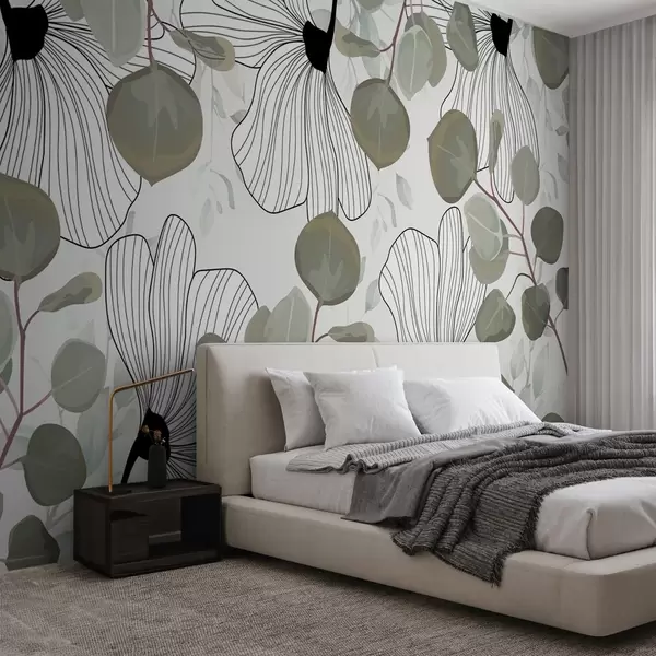 Fototapeedid Valgetest õitest ja rohelistest lehtedest koosnev kompositsioon Nr w02955
