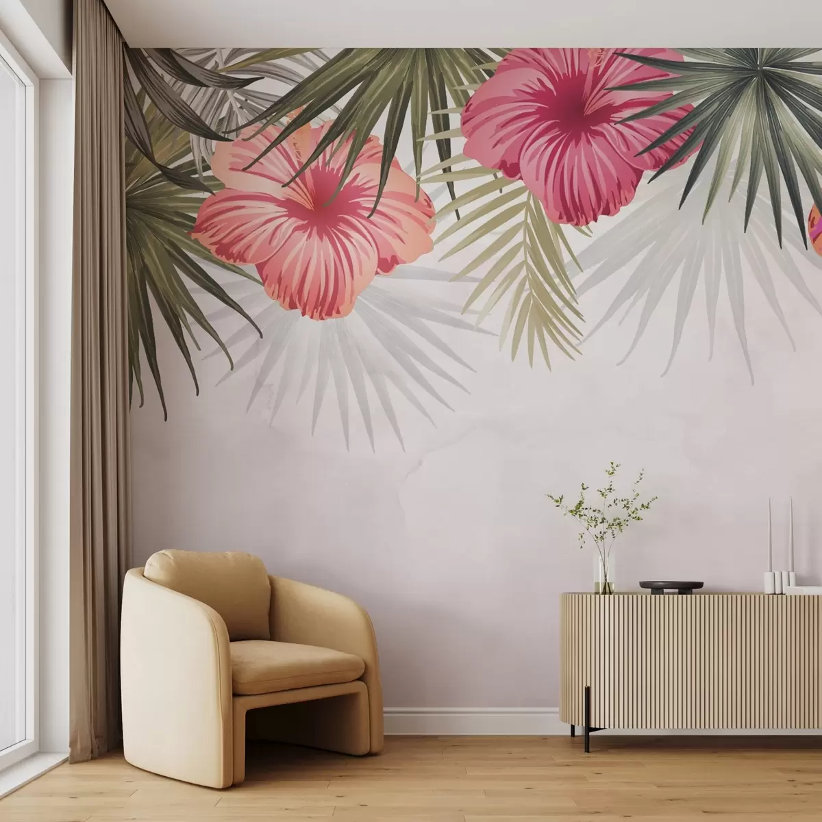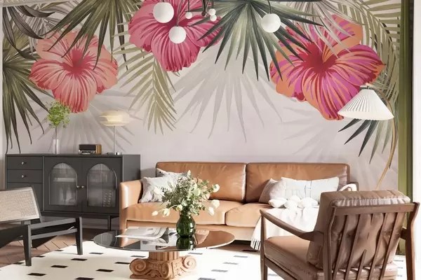 Fototapeedid Troopilised lehed ja lilled ülevalt Nr w03106