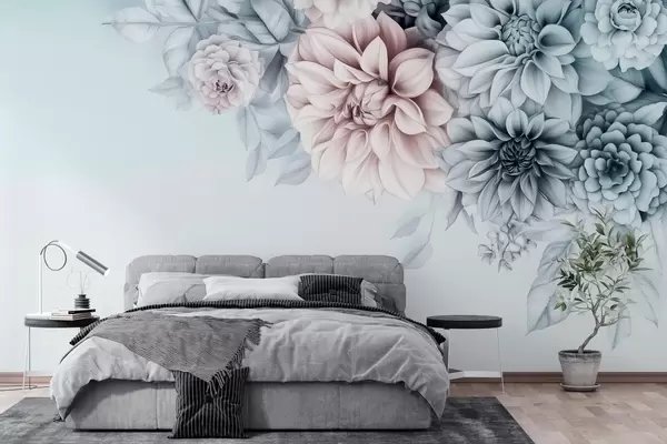 Fototapeedid krüsanteemide kimp hallikas-sinisel taustal Nr w03118