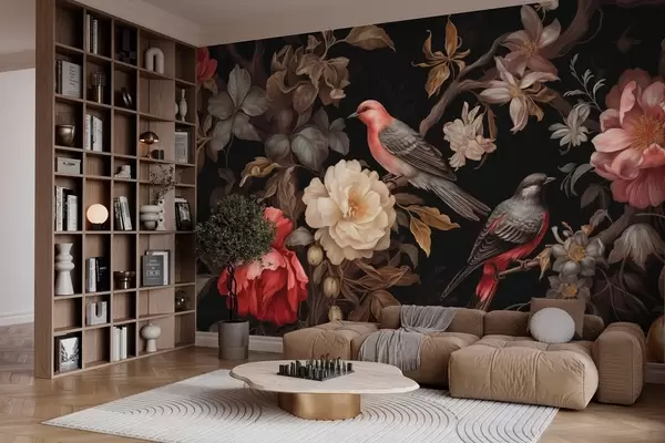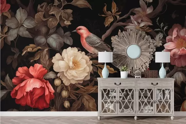 Fototapeedid Linnud ja lilled tumedate aktsentidega Nr w03131