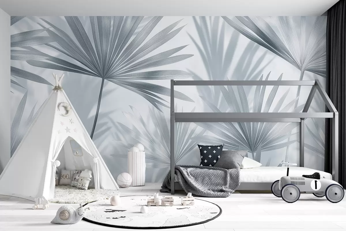 Fototapeedid Palmilehed, lillemustrid, minimalism, troopika, hallid värvid Nr w03152v1