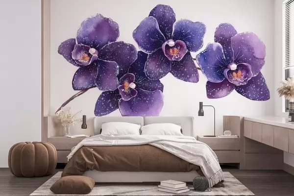 Fototapeedid Orhid lille oksad, akvarellstiilis, lillad, lillad värvid Nr w03165