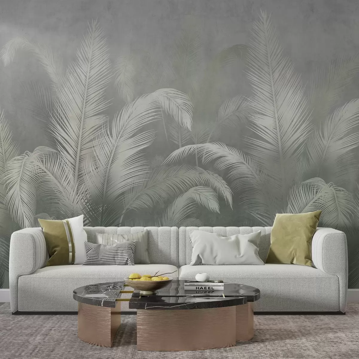 Fototapeedid Troopilised palmilehed grunge stiilis rohelise värviga Nr w03250v2