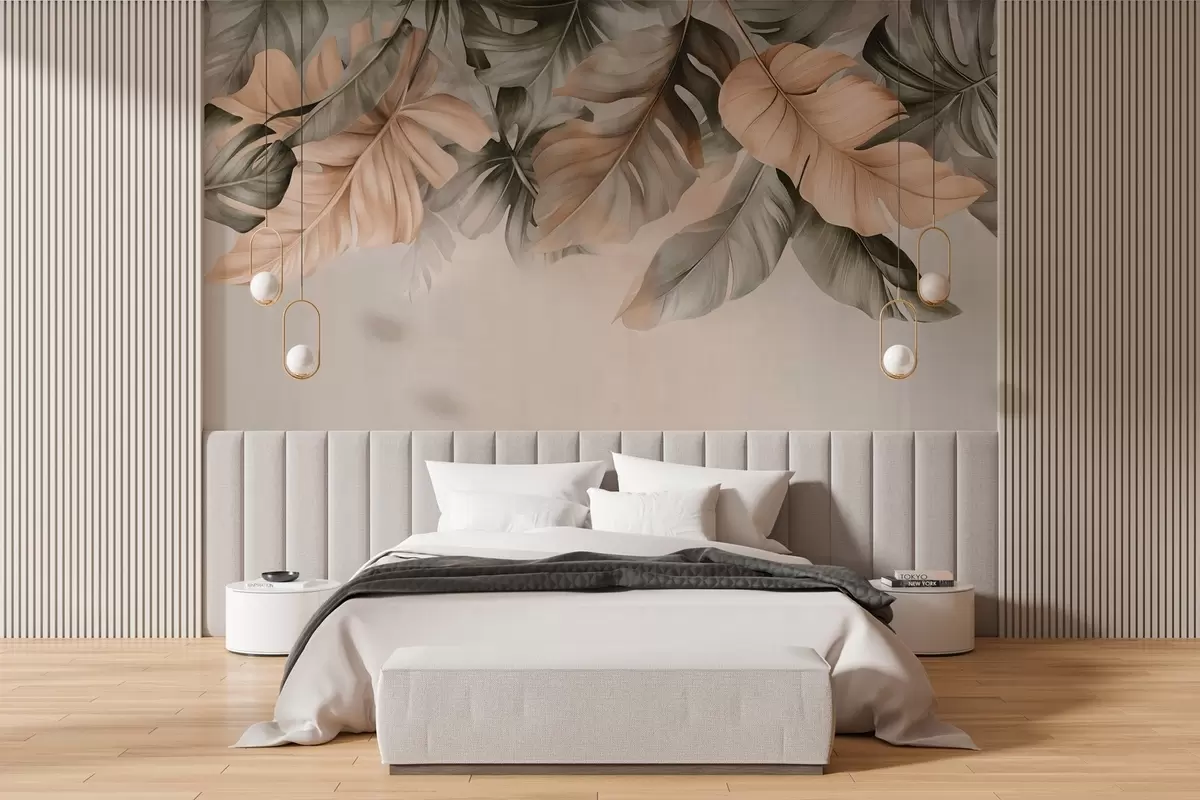 Fototapeedid Ülalt rippuvad troopilised lehed tekstuurilisel taustal Nr w03290