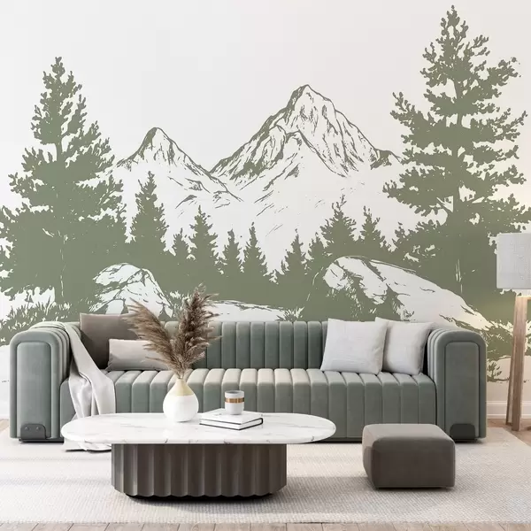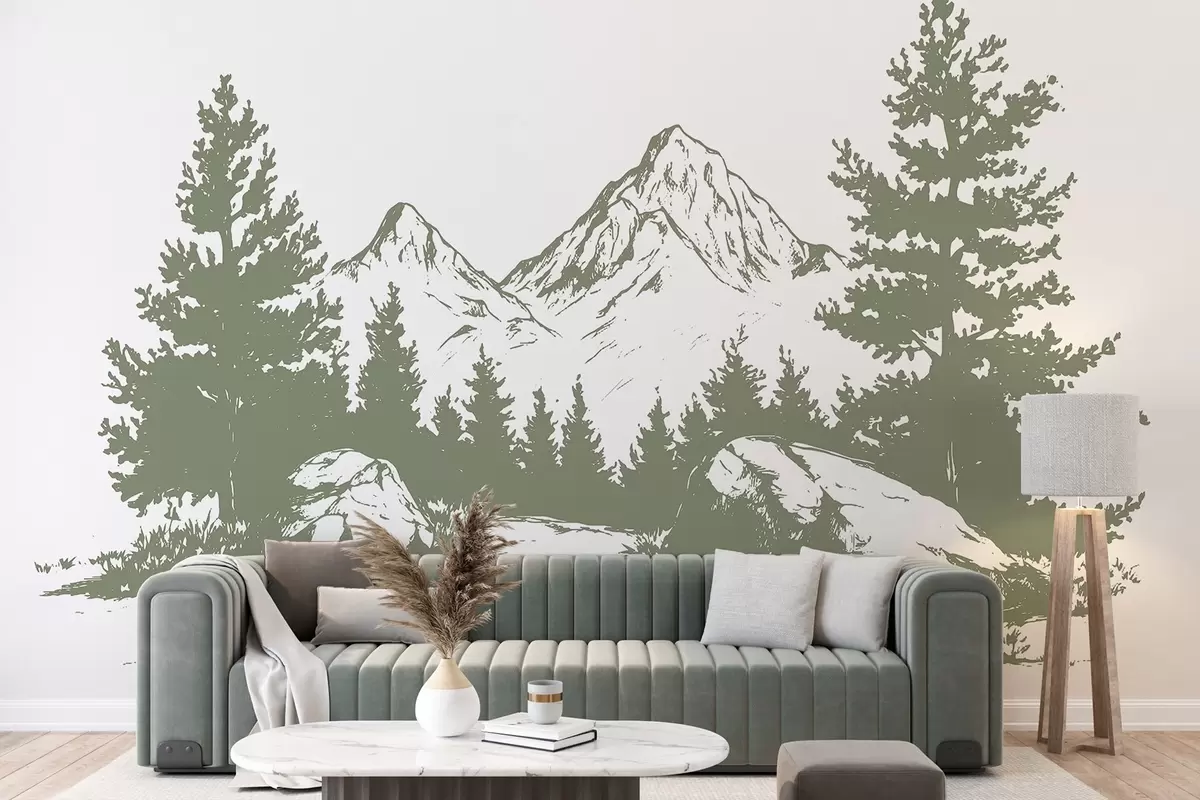 Fototapeedid Alpid, mäed koos metsaga, joonistus, roheline värvus Nr w03342v1