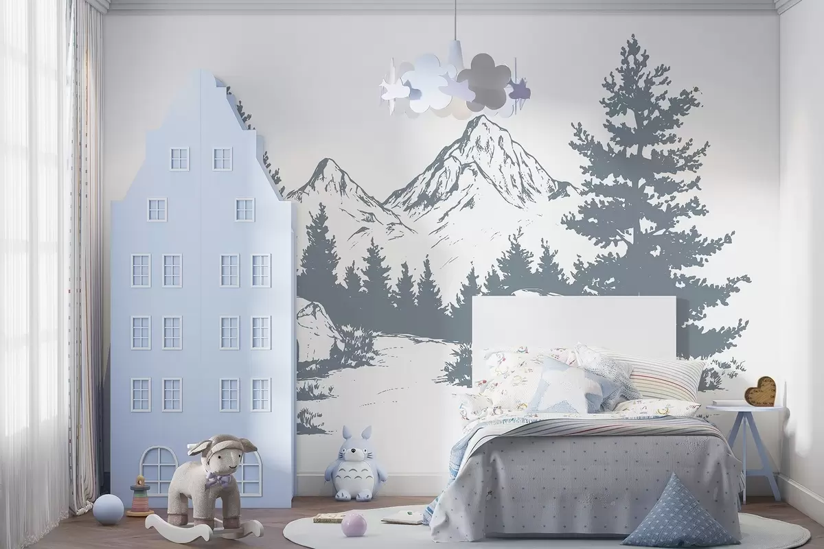 Fototapeedid Alpid, mäed koos metsaga, joonistus, hall värvus Nr w03342v2