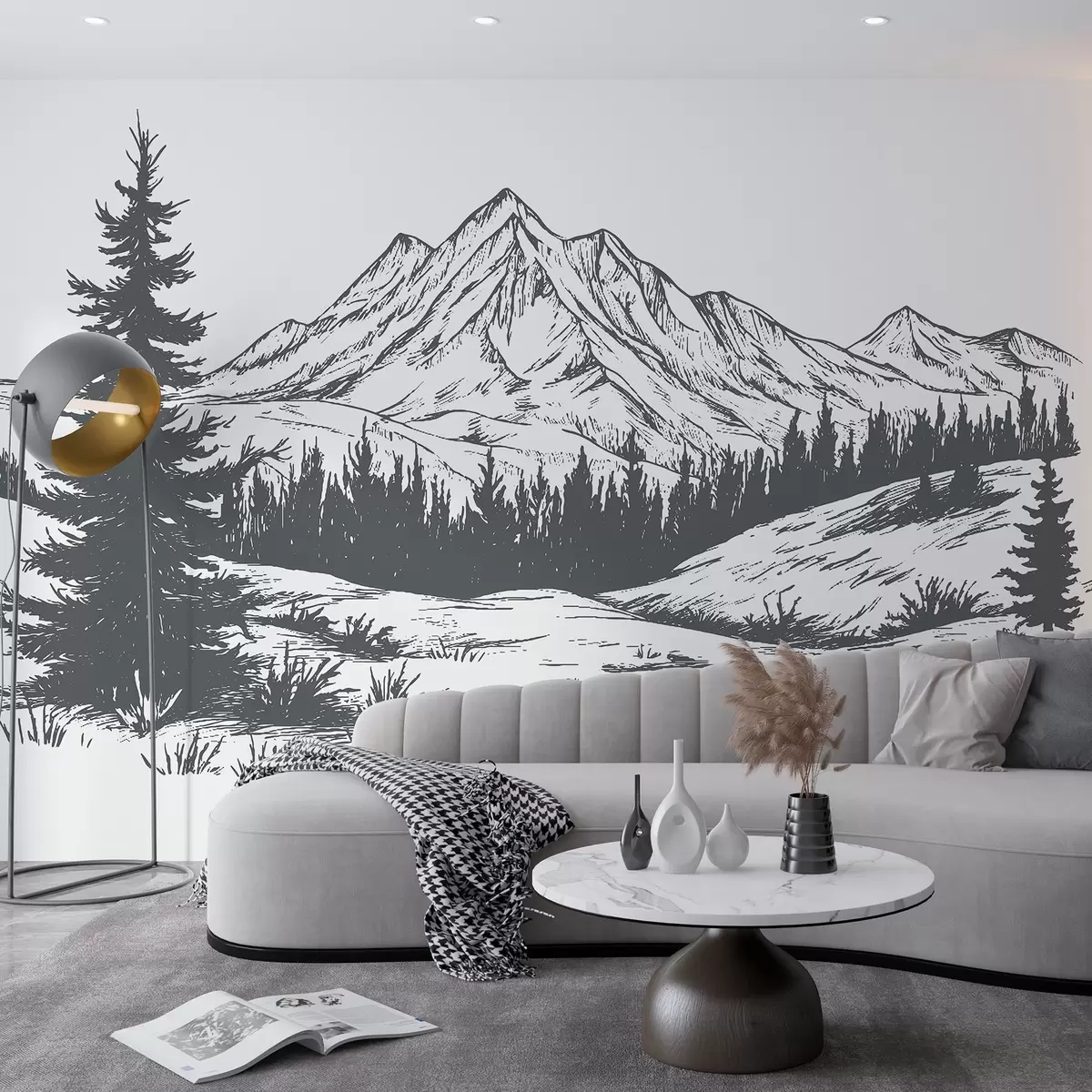 Fototapeedid Mägede maastik koos mändide, metsa, looduse, tumehalli värvi Nr w03344