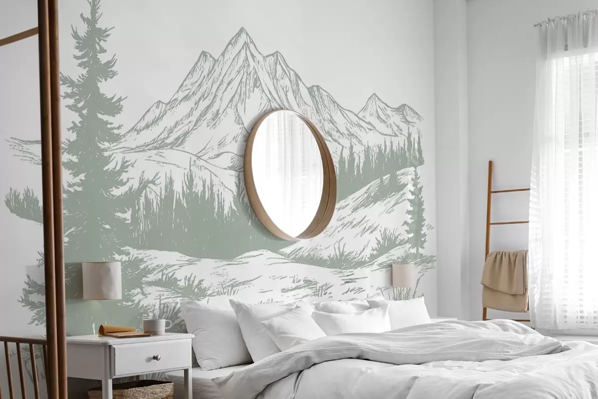 Fototapeedid Mägede maastik koos mändide, metsa, looduse, pehme rohelise värviga Nr w03344v1