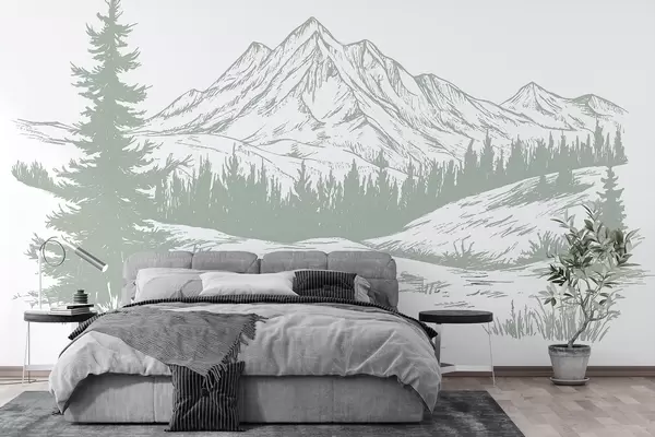 Fototapeedid Mägede maastik koos mändide, metsa, looduse, pehme rohelise värviga Nr w03344v1