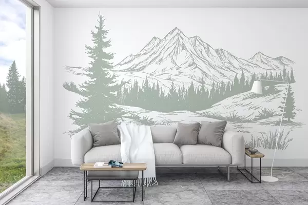 Fototapeedid Mägede maastik koos mändide, metsa, looduse, pehme rohelise värviga Nr w03344v1