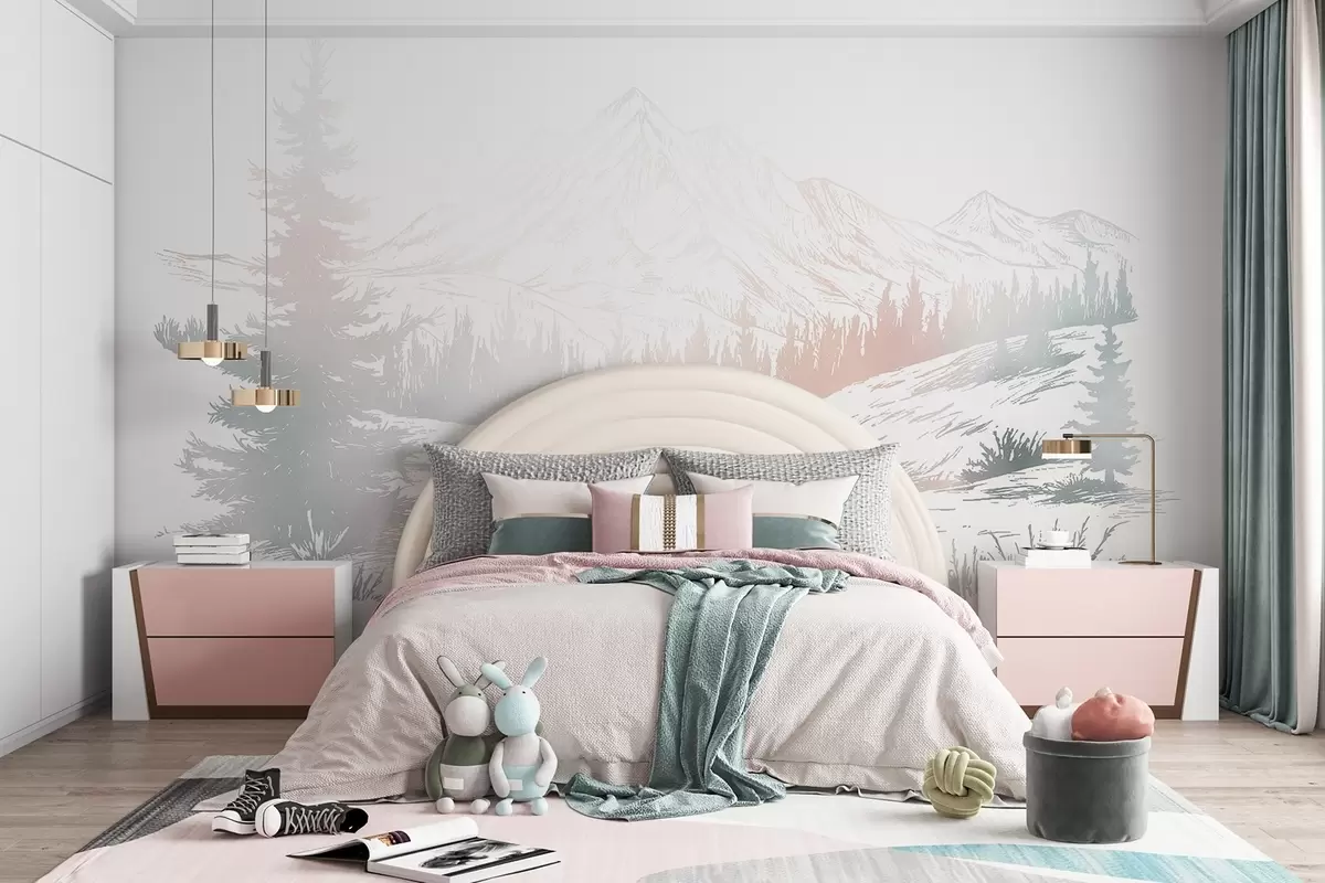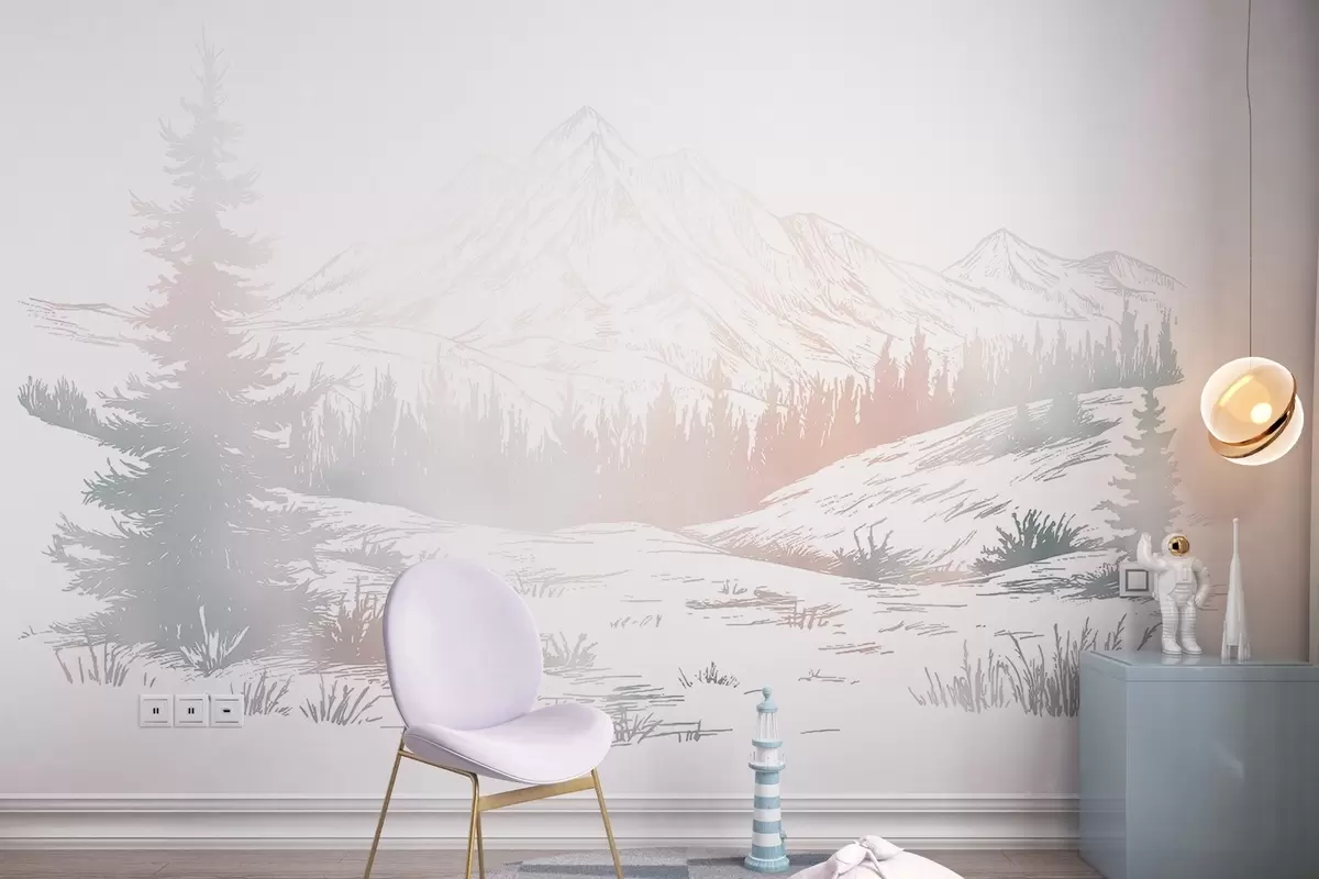 Fototapeedid Mägede maastik koos mändidega, mets, loodus, värviline Nr w03344v4
