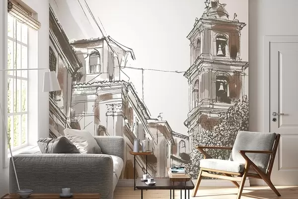 Fototapeedid Vahemere linna tänav, kabel, arhitektuur, beež ja pruunid värvid Nr w03350v1