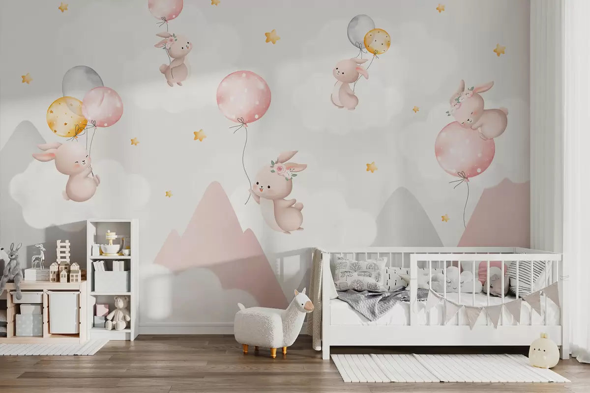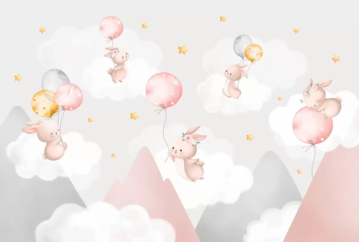 Fototapeedid Jänkud õhupallidega pilvedel mäetipude keskel Nr w03375