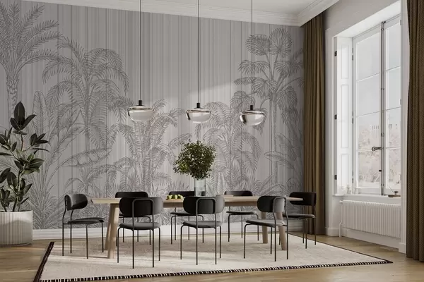 Fototapeedid Vintage illustratsioon troopiliste taimede ja palmipuude kohta tekstuurilisel taustal Nr w03383
