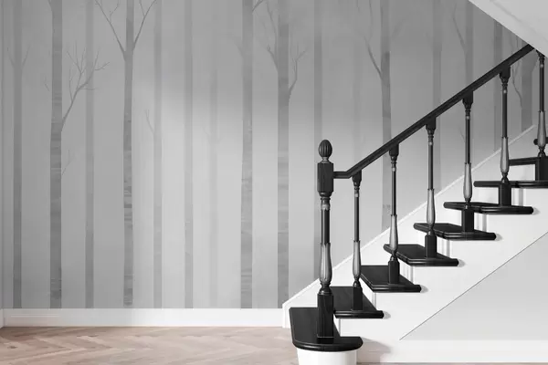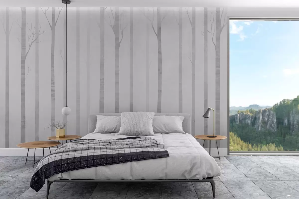 Fototapeedid Puude tüved udus halli skaalaga Nr w03386