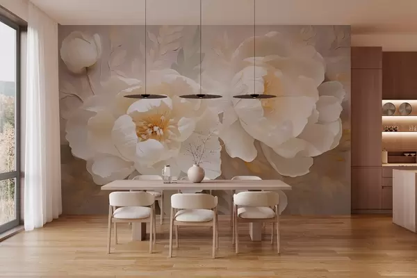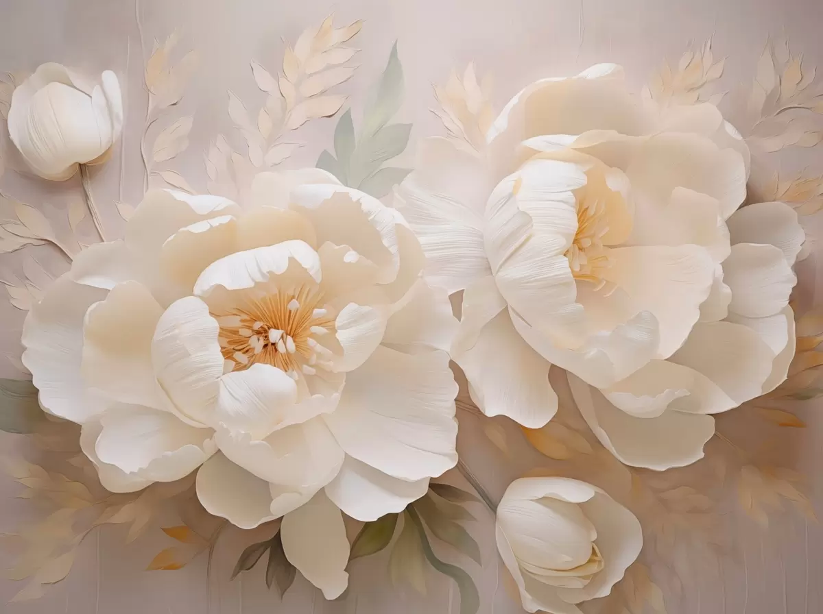 Fototapeedid Õitsevad pioonililled beeži heledates värvides Nr w03390