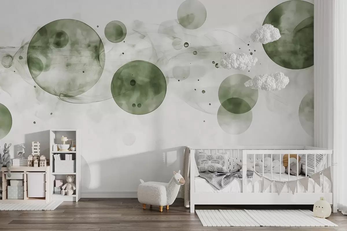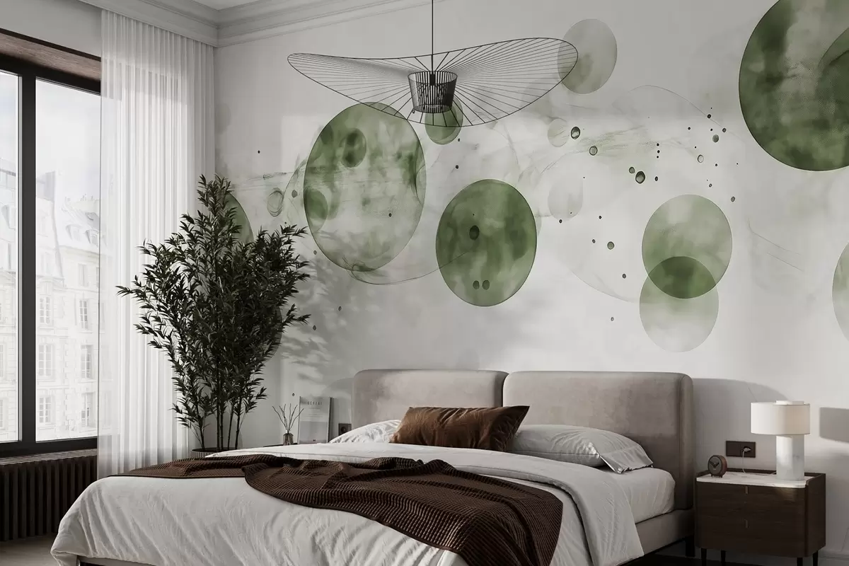 Fototapeedid Vesivärvi stiilis ringid, abstraktsioon, eeterlik, voolav kunst, rohelised värvid Nr w03405v1