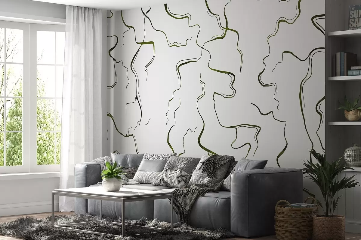 Fototapeedid Geomeetrilised jooned, tindistiil, abstraktsioon, rohelised värvid Nr w03436