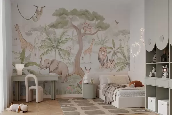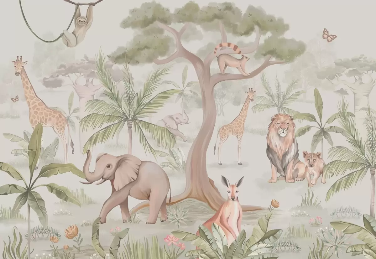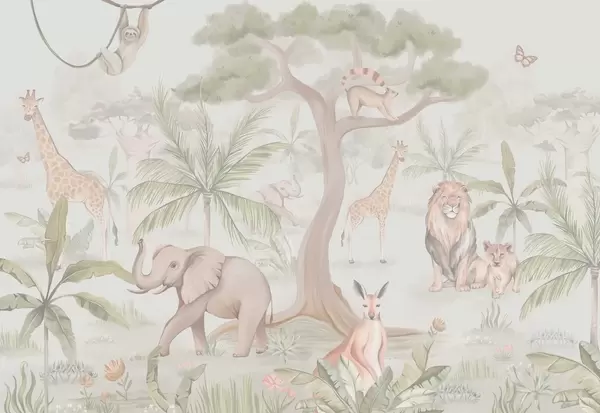Fototapeedid Panoraam džunglisse koos loomadega Nr w03444